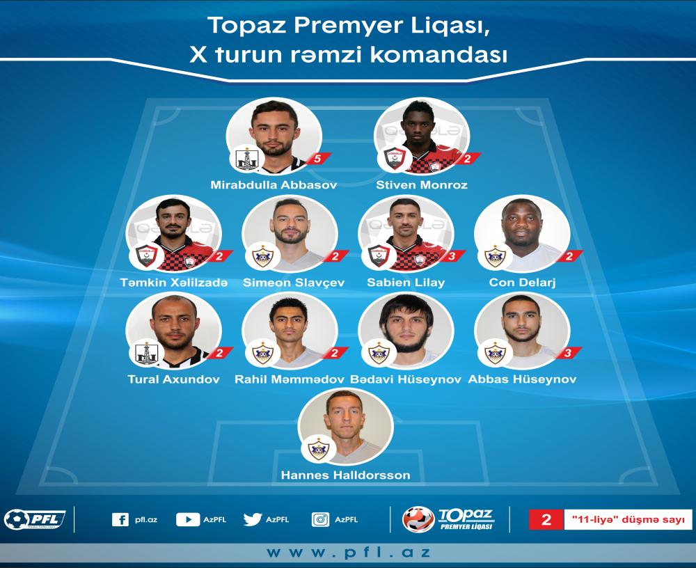 SportLine.az “İnStat” şirkətinin təhlilinə əsasən Topaz Premyer Liqasının 10-cu turunun rəmzi komandasını diqqətinizə çatdırır: