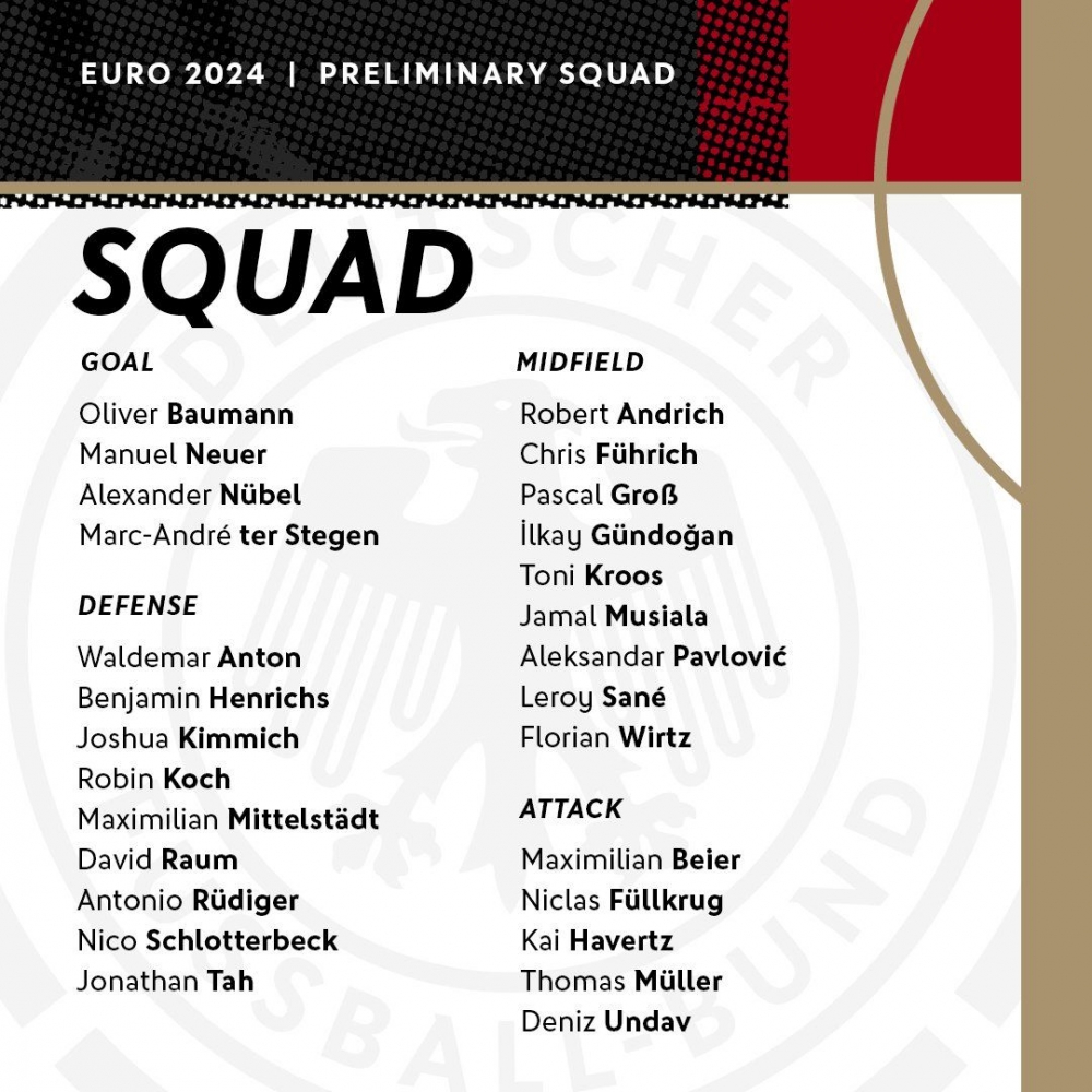 Almaniya millisinin AVRO 2024 üçün yekun heyəti açıqlanıb