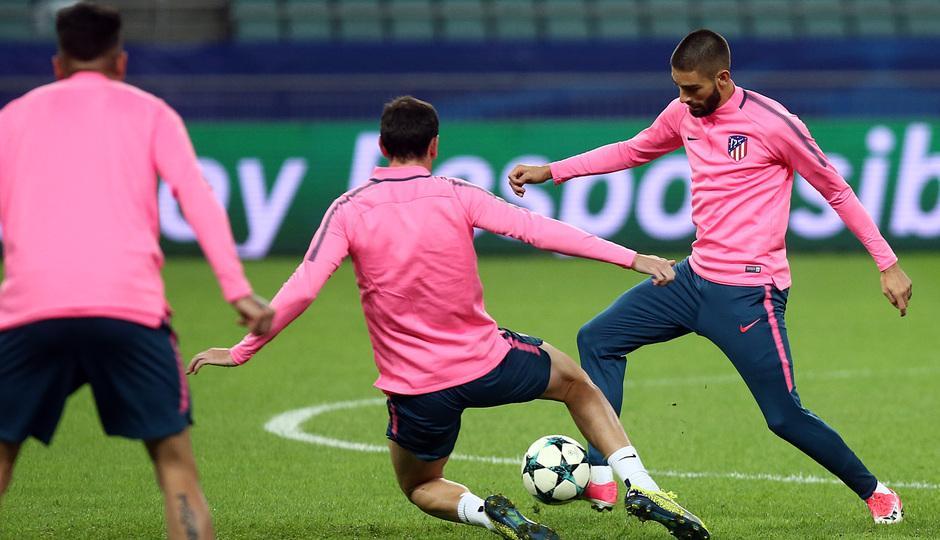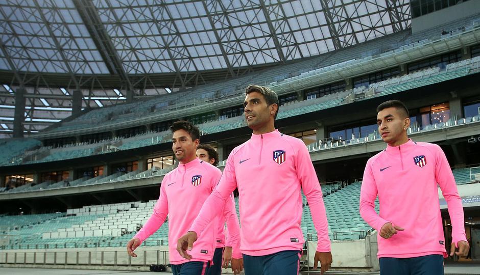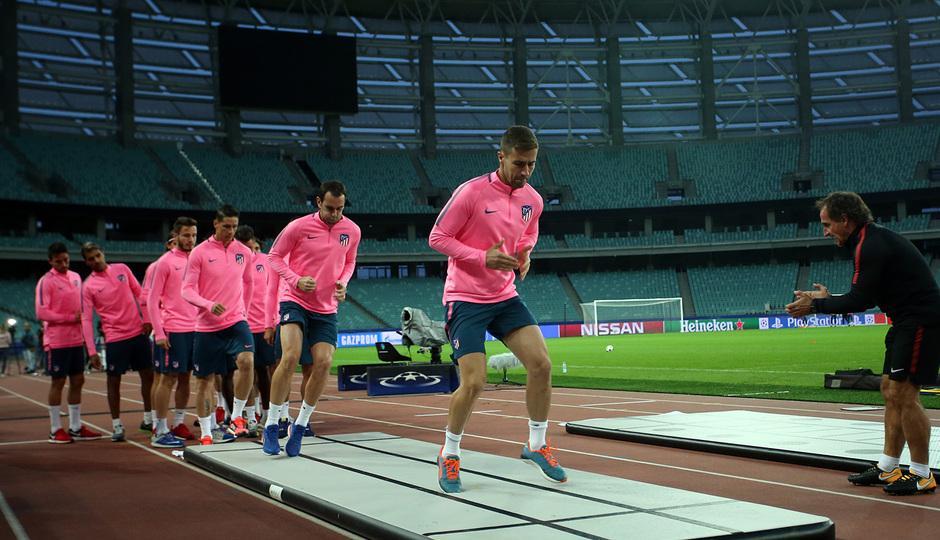 UEFA Çempionlar Liqasının 3-cü turu çərçivəsində "Qarabağ"la qarşılaşacaq "Atletiko" matçın keçiriləcəyi Bakı Olimpiya Stadionunda oyunöncəsi məşqə çıxıb.