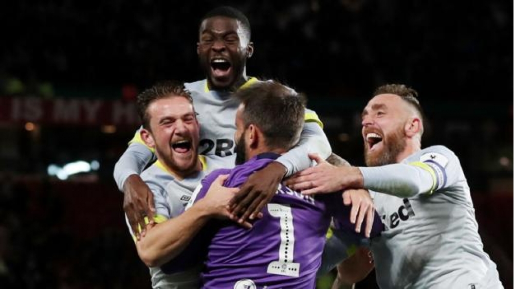 İngiltərə Federasiya Kubokunda keçirilən "Mançester Yunayted" - "Derbi Kaunti" görüşündə aşağı liqa təmsilçisi qələbəyə sevinib. SportLine.az xəbər verir ki, əsas vaxtı 2:2 hesablı heç-heçə ilə yekunlaşan görüşdə cütün taleyi penaltilər seriyasında müəyyənləşib. Burada "Derbi Kaunti" futbolçuları daha dəqiq olublar: 8:7.