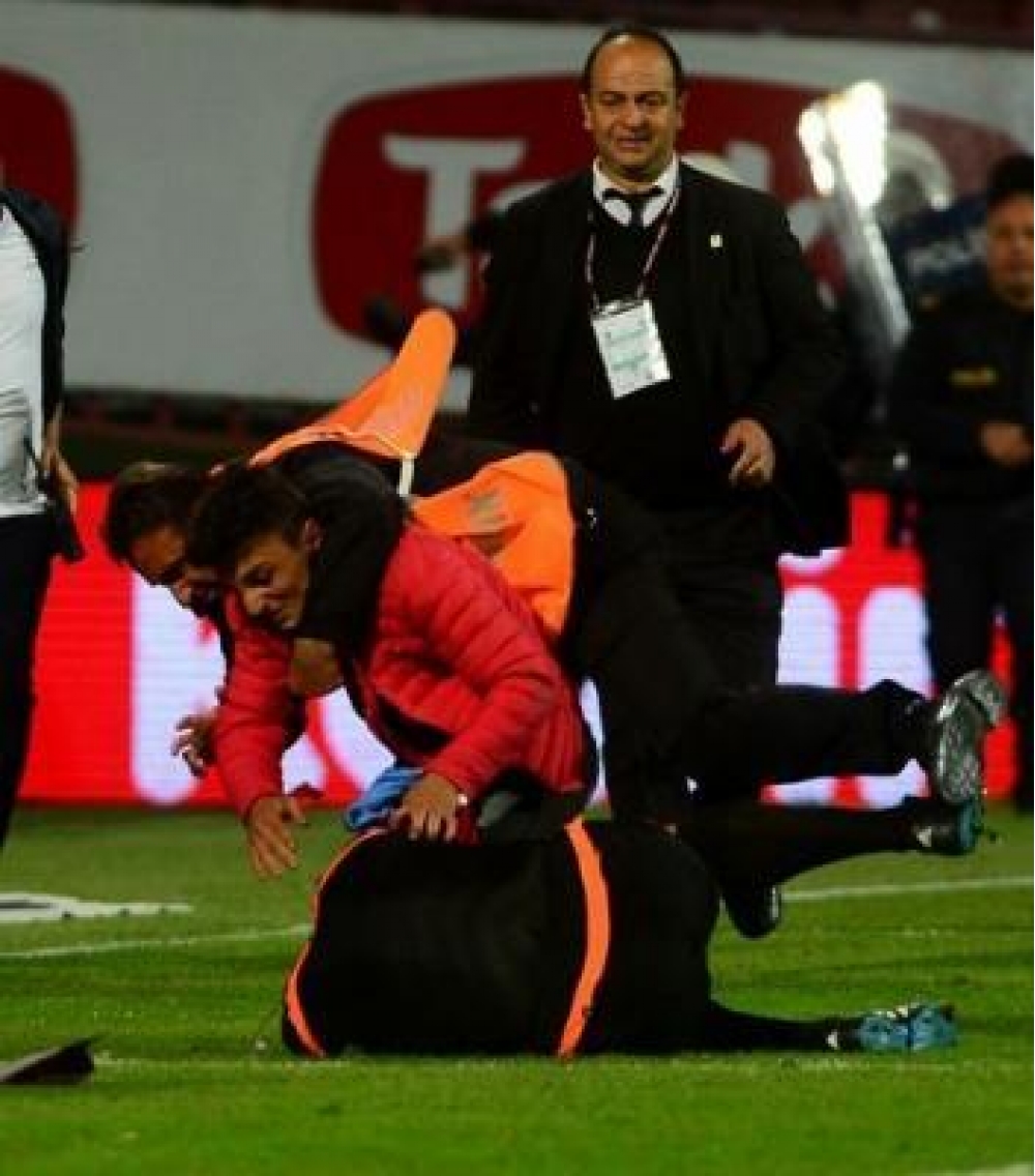 Türkiyə Super Liqasında keçirilən "Trabzonspor" - "Fənərbaxça" oyununda xoşagəlməz hadisə yaşanıb. SportLine.az xəbər verir ki, matçın sonlarına yaxın yerli azarkeşlərdən birinin meydana daxil olub əlavə köməkçi hakimi döyməsi vəziyyəti gərginləşdirib. Nəticədə, oyun yarımçıq dayandırılıb.