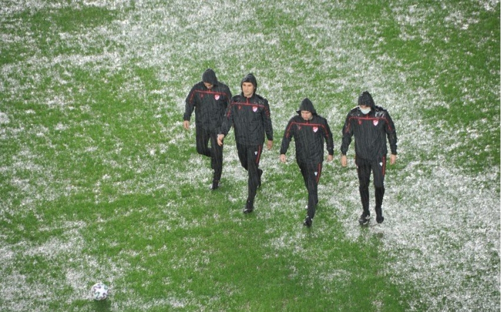 Sportline.az "NTV Spor"a istinadən xəbər verir ki, qarşılaşma əlverişsiz hava şəraiti - leysan yağışı ilə əlaqədar təxirə salınıb.